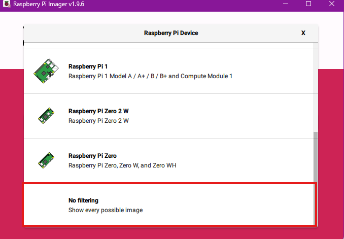 Step 1: Select “No Filtering” under Raspberry Pi Device