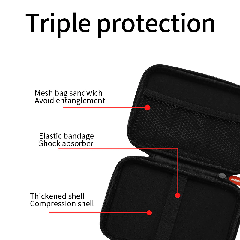 Protect your beloved Anbernic RG DS handheld game console in style with this official carry case. Purpose built for the RG DS, this durable carry bag features triple protection for your gear, with an inner mesh compartment, elastic console holder, and thick compression shell to absorb shock from the outside elements. You can carry your Anbernic RG DS anywhere safely and easily, with storage for your essential cables too.