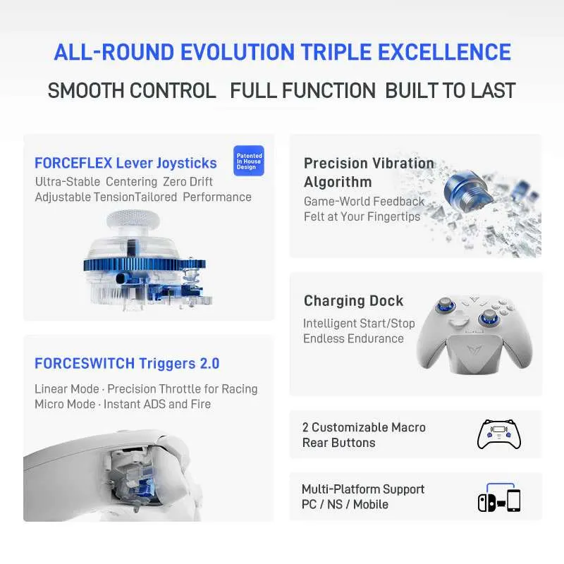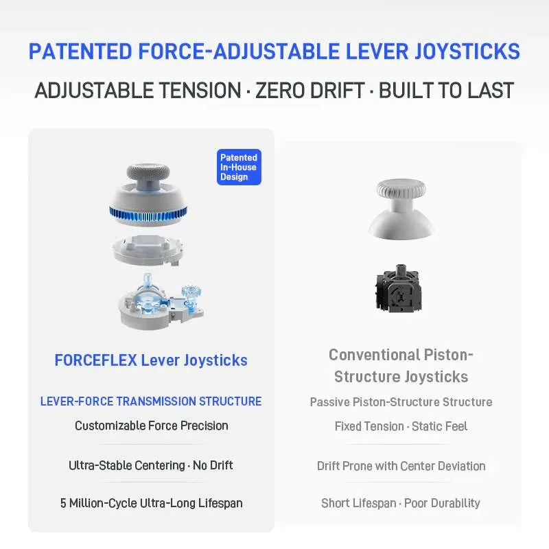 - Hall Effect Technology: Say goodbye to stick drift. Magnetic sensors ensure your inputs remain pixel-perfect for years, providing a massive lifespan of up to 10 million cycles.