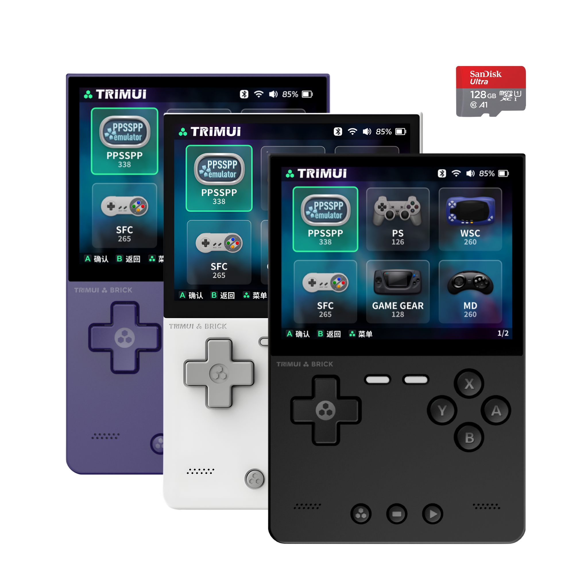 - 128GB SANDISK ULTRA SD card loaded with the latest TrimUI stock OS and more