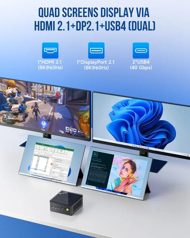 | Graphics Output | Output via HDMI×DP×USB4*2, supports up to 4096×2160 resolution |