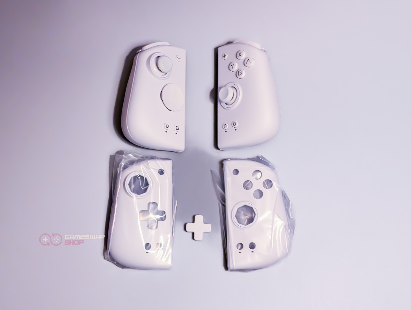 This is a pair of brand new Mobapad M6 HD controllers sealed in the box, complete with additional faceplates and switchable d-pad buttons. The Mobapad M6 HD and M6S controllers are regarded as best-in-class joy cons for the Nintendo Switch among enthusiasts.